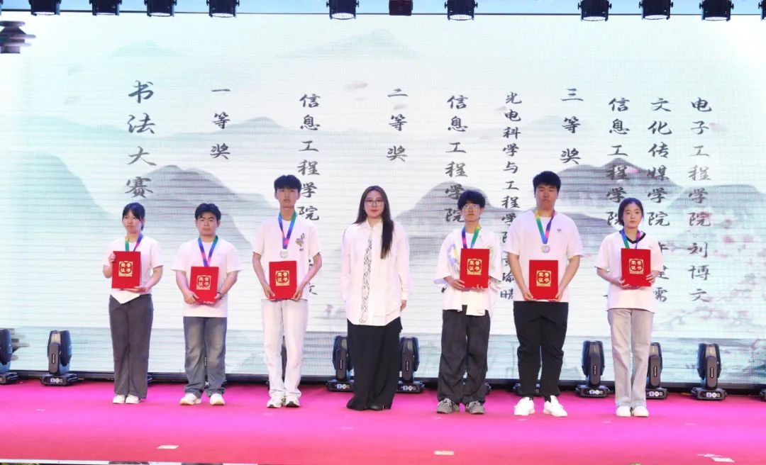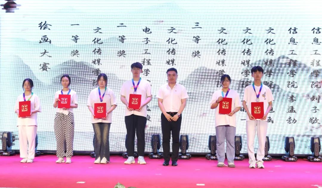 信息工程学院党总支书记郭斌为绘画大赛获奖者颁奖