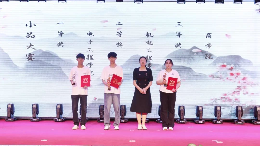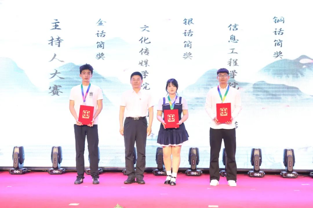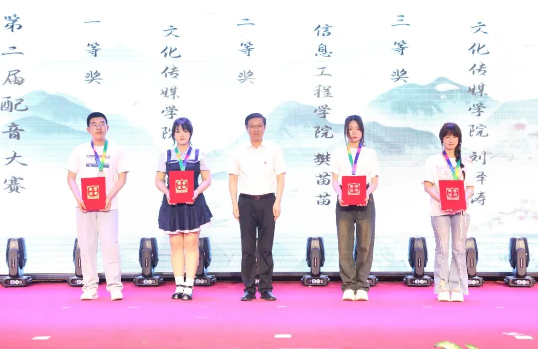电子工程学院党总支书记张敏林为配音大赛获奖者颁奖