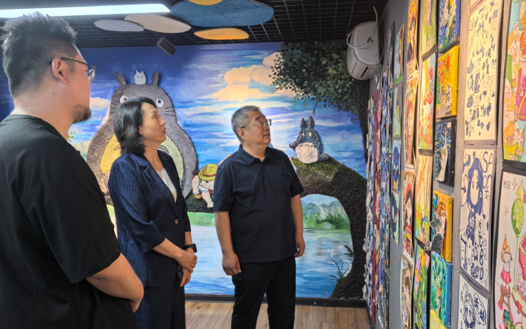 杨彬来到位于南城街道的牡丹区童与画美术教育培训机构,查看教室、消防通道、消防器材,观看学生作品,与负责人交流,详细了解全国校外培训监管与服务平台使用、预收费管理、校外培训平台家长端使用、“先学后付”开通建设、消防安全、教育教学等方面的情况。