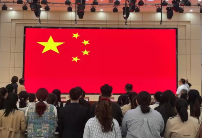 开幕式现场秩序井然,氛围庄重。全体与会人员肃立,齐唱中华人民共和国国歌。